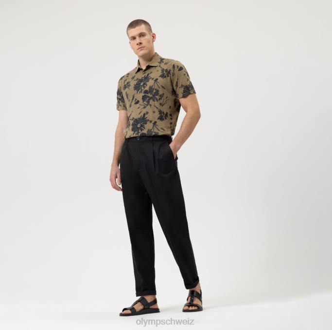 Sanfte Botanicals und erfrischende Farbschemata geben den Ton für die aktuelle Olympia-Saison an – und lassen Sie uns nicht bei der Casual-Kollektion stehen bleiben! Seinen besonderen Charme verdankt dieses Olympia-Casual-Polo dem modernen Design in Khaki, gefertigt aus modisch stückgefärbtem Baumwoll-Jersey mit Leinen. Das lässig-elegante Strukturmaterial setzt einen zusätzlichen Akzent und ist mit seinen dezent kühlenden Eigenschaften einfach perfekt für die Frühlingssaison. ein klassischer Polokragen mit kurzer Knopfleiste rundet den Look ab.
