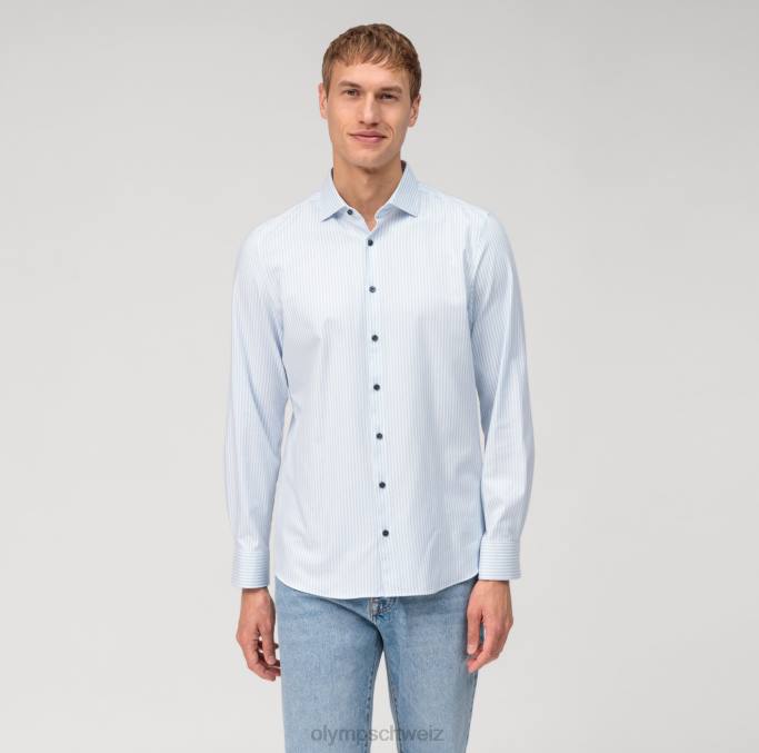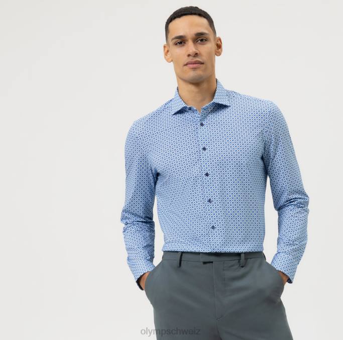 das 24/seven all-time-shirt aus der olymp level five body fit linie ist der ultimative ausdruck von lässigem look und perfektion in der businesswelt. Der Fokus bei Olympia Level Five liegt auf Mischgarnen und ausgefeilter Digitaldrucktechnologie mit einzigartigen, intensiven Minimaldrucken. Die attraktive Passform aus formbeständigem, geschmeidigem Flex-Jersey wechselt seriös und unabhängig zwischen Arbeit, After-Work und gesellschaftlichen Anlässen. Der klassische Kentkragen passt perfekt zur schmalen, sportlichen Passform und überzeugt nicht nur durch seine atemberaubende Optik, sondern auch durch den strategischen Einsatz nachhaltiger Produktionsmethoden und der Verarbeitung wertvoller Rohstoffe. ein Businesshemd, das den Weg in die Zukunft weist.