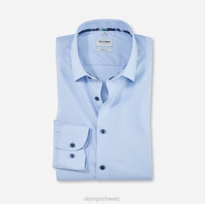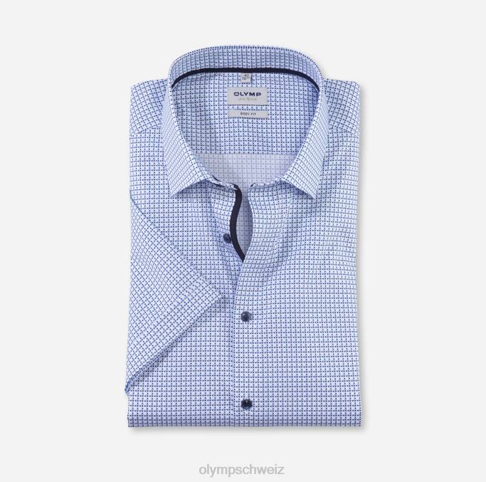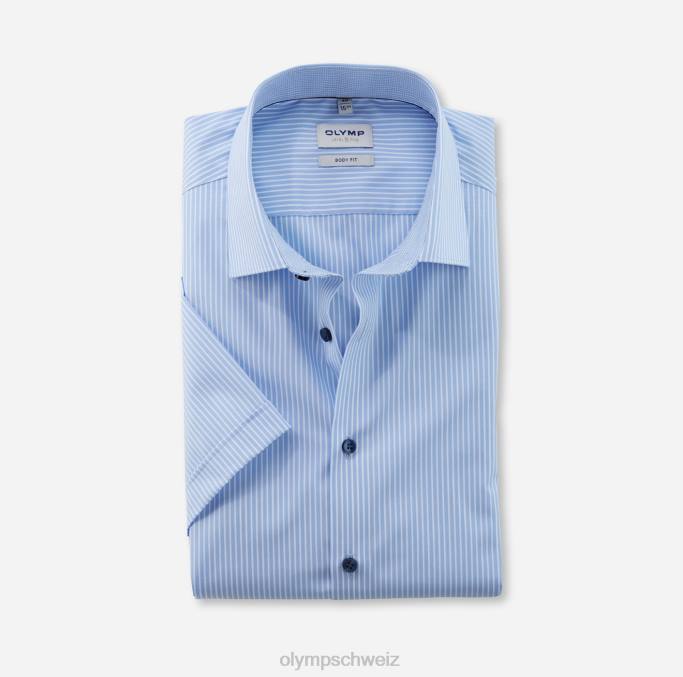 Smarter Style: Das Kurzarmshirt olymp level five wirkt durch das zweifarbige Design der klassischen Blockstreifen betont modern. Der extrafeine Popeline-Stoff besteht aus reiner Baumwolle und verfügt über eine elegante, luxuriöse Mattstruktur. Das bequeme Stretchmaterial, das nach dem Green-Choice-Standard gefertigt ist, sieht nicht nur gut aus, sondern sorgt auch für ein wunderbares Tragegefühl. Darüber hinaus bietet es all dies und verfügt gleichzeitig über die bügelleichten Eigenschaften, die Sie von diesem Sortiment erwarten! Ein charmanter Frühlingsbegleiter für Business und After-Work, gekonnt akzentuiert mit einem modischen New-York-Kent-Kragen. in Blau.